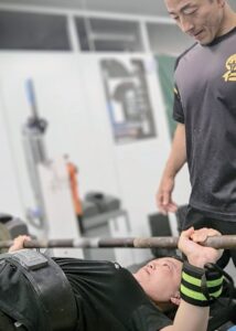 肩甲骨のはめ方のコツを完全に掴まれ、バーを胸に下ろすボトムポジションも、より深く、お腹側に降りるようになってきました。トレーナーから見ても、今までで一番精度の高いベンチプレスでした!