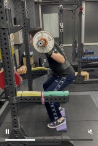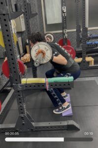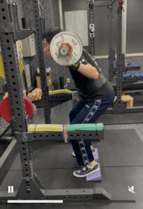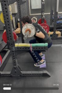 1年前は、しゃがみの深さをしつこくお伝えしていましたが、なんと最初から床と並行より下までしゃがんでいらっしゃる✨毎週のベンチプレスとデッドリフトで体幹部の柔軟性出ましたねー👏