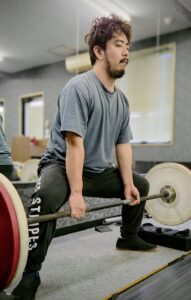 中山さんは、バーベルを上げる前に一度目を閉じて“重さ”を感じ取るルーティンを行います。