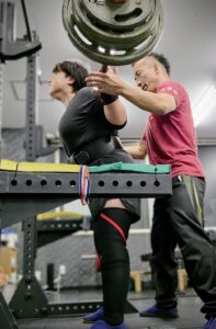 特に時間をかけてご指導したのが、スクワットにおける**「ラックアウト → バックステップ」という、地味ながらも極めて重要な行程**です。